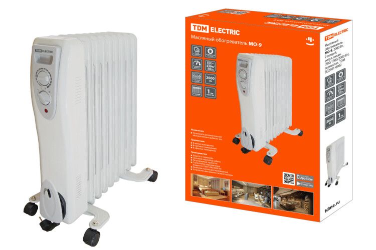 Масляный обогреватель МО-9, 2000 Вт, 9 секций, регул. мощн. (700/1300/2000 Вт), термостат, TDM SQ2501-0902