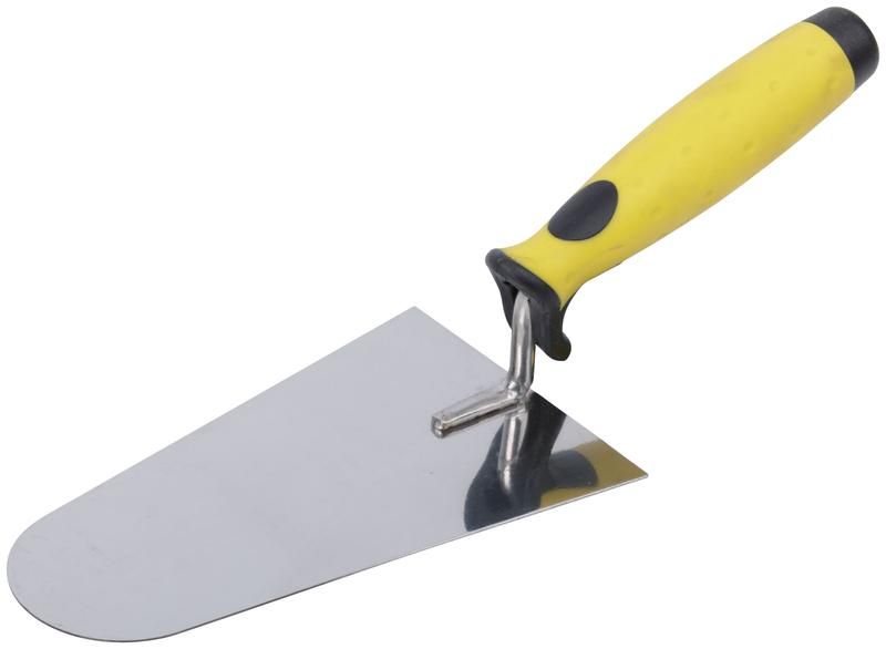 - Овальная форма полотна кельмы: Форма полотна в виде полукруга позволяет легко и точно наносить строительные смеси.