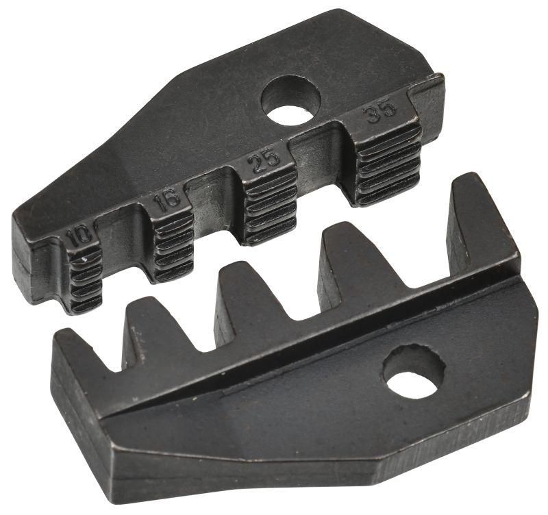 Трапециевидный профиль обеспечивает равномерное давление на стенки наконечника, что снижает риск повреждения жилы и гарантирует плотный контакт. Четыре гнезда позволяют за один ход обжать четыре наконечника одновременно - это экономит время при массовом монтаже.