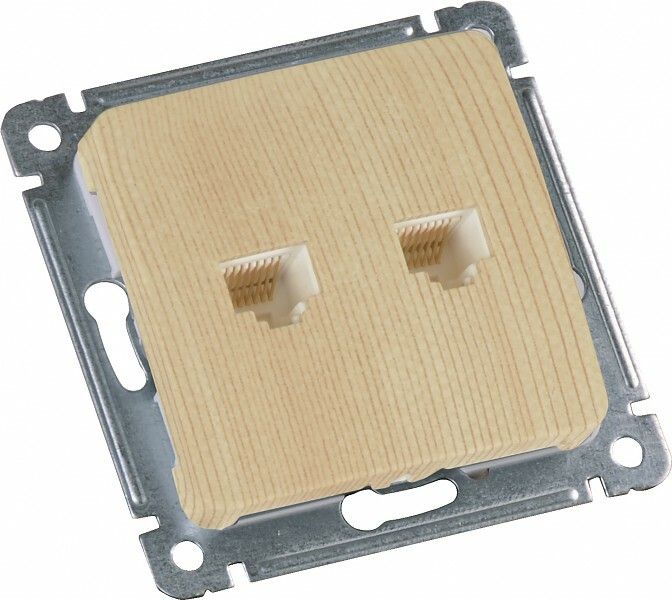 Розетка компьютерная и телефонная скрытой установки, механизм, цвет сосна | РСКТ-440-02 HEGEL