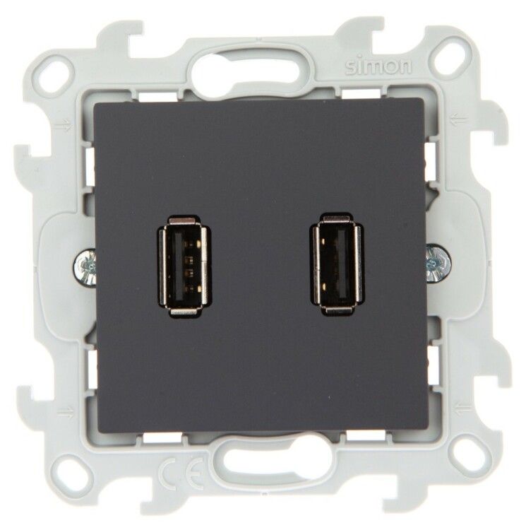 - При замене старой розетки - новый Коннектор 2xUSB тип A, 2.0, цвет графит легко впишется в имеющуюся рамку Simon, сохраняя единый стиль интерьера