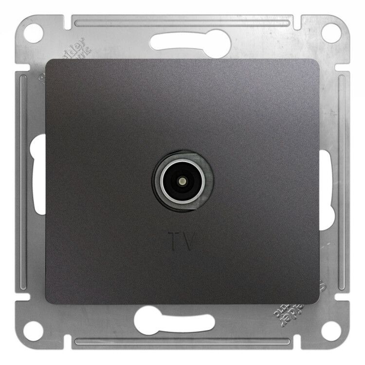 Розетка телевизионная TV, механизм, цвет графит, коннектор от Systeme Electric (артикул gsl001393) - это оконечный коннектор для подключения антенного кабеля к телевизорам, приставкам и другим устройствам в системах спутникового и эфирного вещания. Механизм рассчитан на скрытую установку и совместим с рамочной системой Glossa.