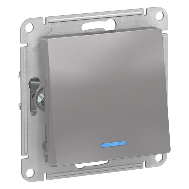 Переключатель одноклавишный ATLASDESIGN с подсветкой схема 6а 10АХ механизам алюминий - ATN000363 APC