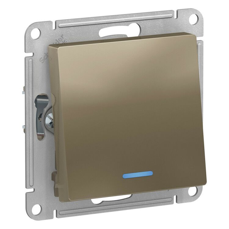 Переключатель одноклавишный ATLASDESIGN с подсветкой схема 6а 10АХ механизам шампань - ATN000563 APC