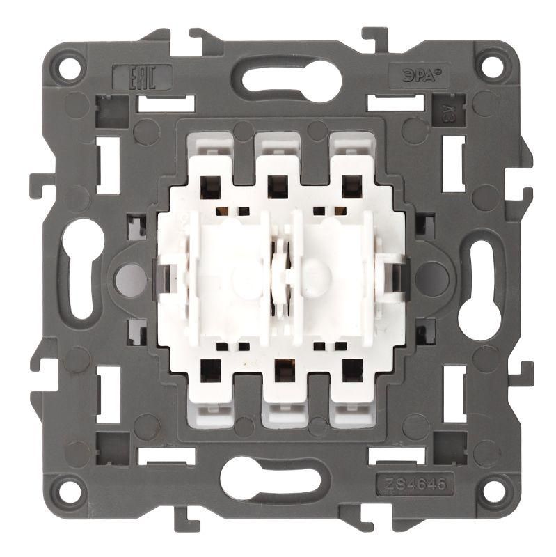 Механизм ЭРА12 устанавливается в стандартные подрозетники глубиной не менее 45 мм. Для фиксации используются как распорные лапки, так и винты - это обеспечивает устойчивость даже в хрупких материалах стен. Автоматические клеммы позволяют зафиксировать жилы кабеля без инструментов: достаточно вставить провод до щелчка. Клеммы поддерживают медные одножильные и многожильные провода сечением до 2,5 мм2.