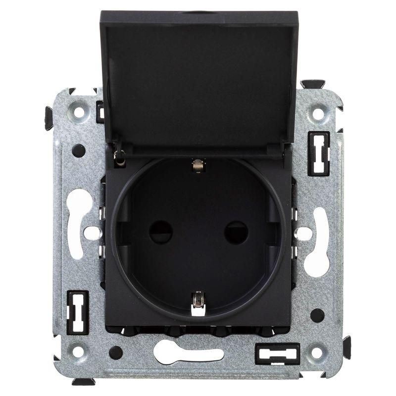Розетка 1-м СП 2мод. Avanti "Черный матовый" 16А 2P+E защ. шторки с крышкой механизм черн. DKC 4412013 ДКС