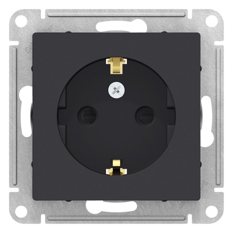 Механизм розетки 1-м СП ATLAS DESIGN с заземл. защ. шторки 16А карбон SchE ATN001045 APC