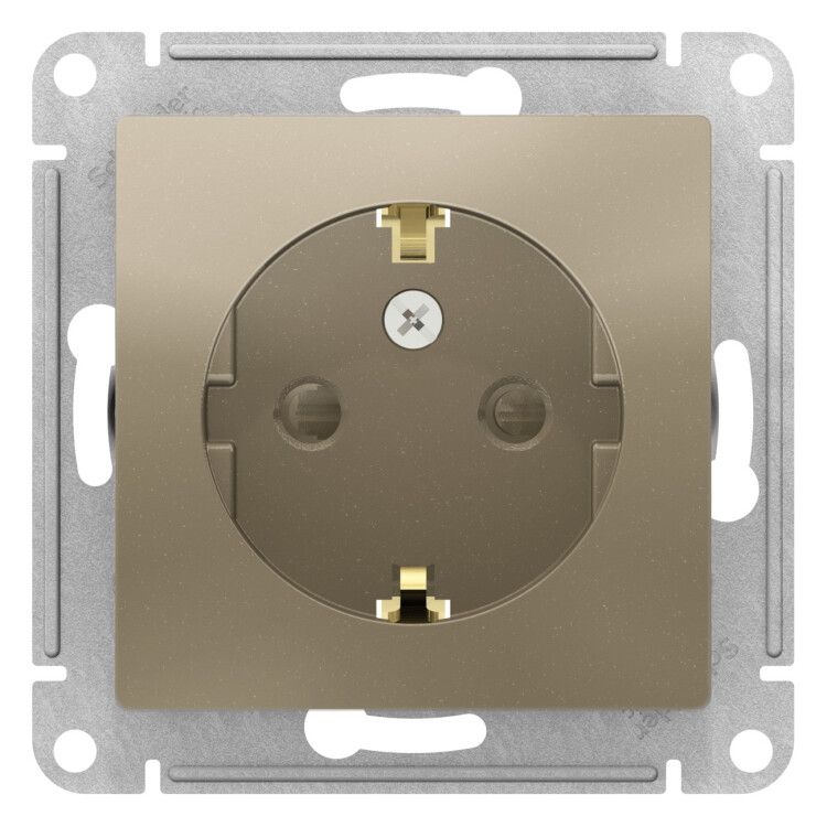 Механизм розетки 1-м СП ATLAS DESIGN с заземл. защ. шторки 16А шампань SchE ATN000545 APC