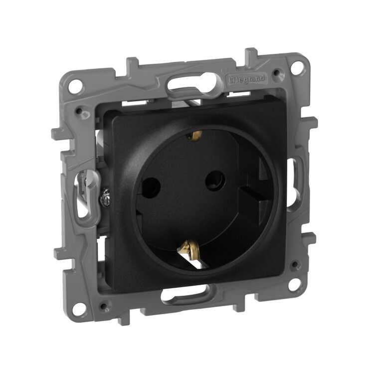 Розетка с заземлением со шторками Legrand Etika (артикул 672622) предназначена для безопасного подключения бытовой техники в помещениях с повышенными требованиями к электробезопасности, особенно там, где есть дети. Устройство соответствует немецкому стандарту, выполнено в антрацитовом исполнении и рассчитано на работу в сетях до 250 В и 16 А.