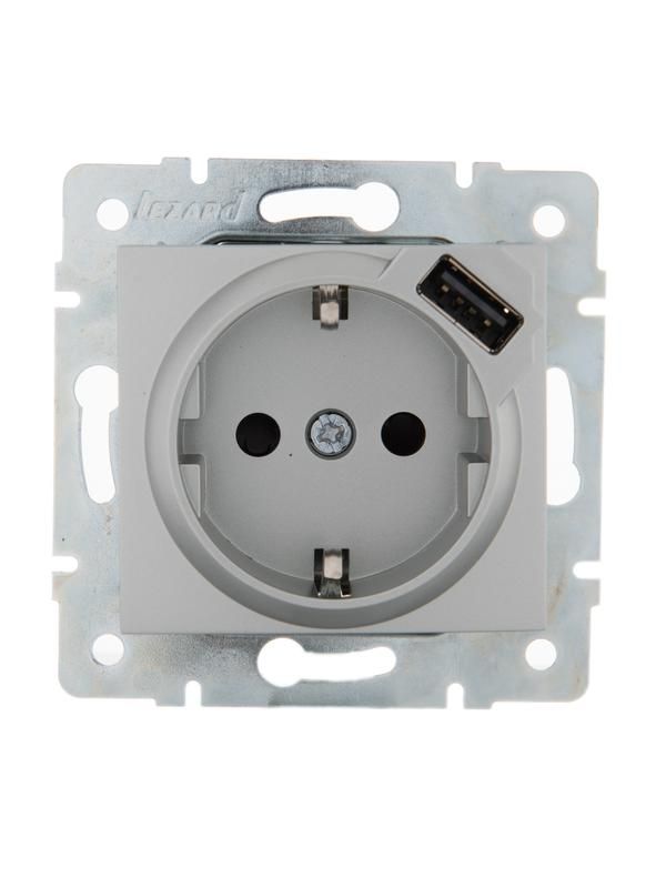 Розетка с заземлением и зарядным устройством USB, 16 А, матовое серебро от Lezard (артикул 707-4388-181) - это комбинированное устройство для подключения бытовой техники и зарядки гаджетов через USB-порт, предназначенное для скрытой установки в стену. Продукт из серии KARINA сочетает надёжную электрическую безопасность и современный дизайн.
