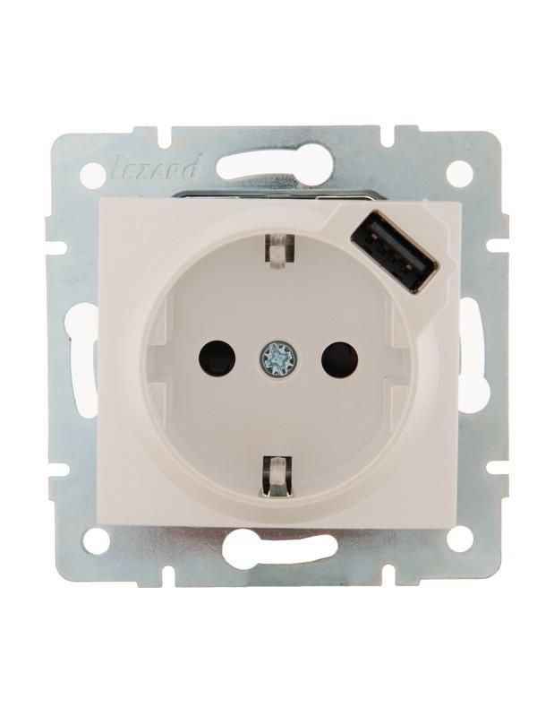 Розетка 1-м СП Karina 16А с заземл. заряд. устройством USB механизм жемчуж./бел. перламутр. LEZARD 707-3088-181