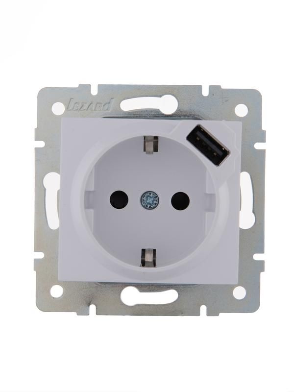 Розетка 1-м СП Karina 16А с заземл. заряд. устройством USB механизм бел. LEZARD 707-0288-181