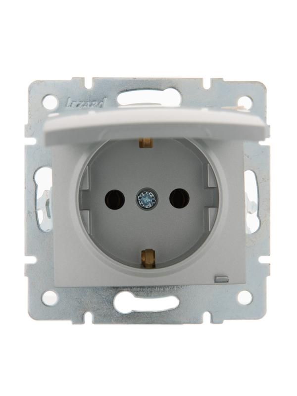 Розетка 1-м СП Karina с заземл. крышкой керамика механизм матов. серебр. LEZARD 707-4388-123
