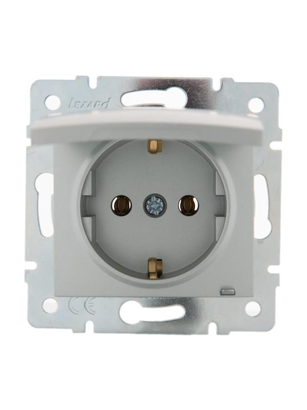 Розетка 1-м СП Karina с заземл. крышкой термопласт механизм матов. серебр. LEZARD 707-4388-123B
