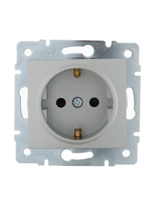Розетка 1-м СП Karina с заземл. защ. шторки термопласт механизм матов. серебр. LEZARD 707-4388-124B