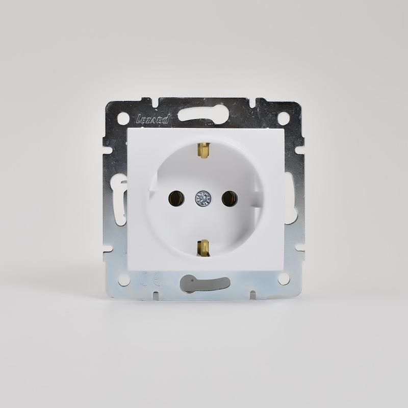 Розетка с заземлением термопластик белая от Lezard, артикул 707-0288-122b, предназначена для безопасного подключения бытовых приборов с заземлением в скрытой проводке. Относится к серии KARINA и совместима с рамками из этой же серии.