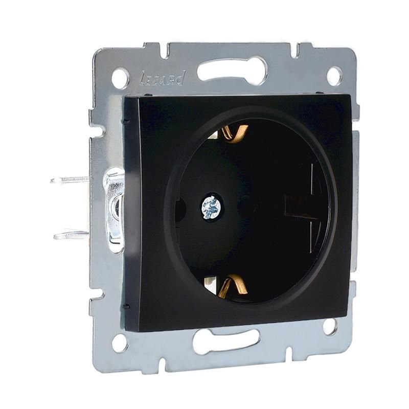 Розетка 1-м СП Karina с заземл. защ. шторки термопласт механизм черн. бархат LEZARD 707-4288-124B