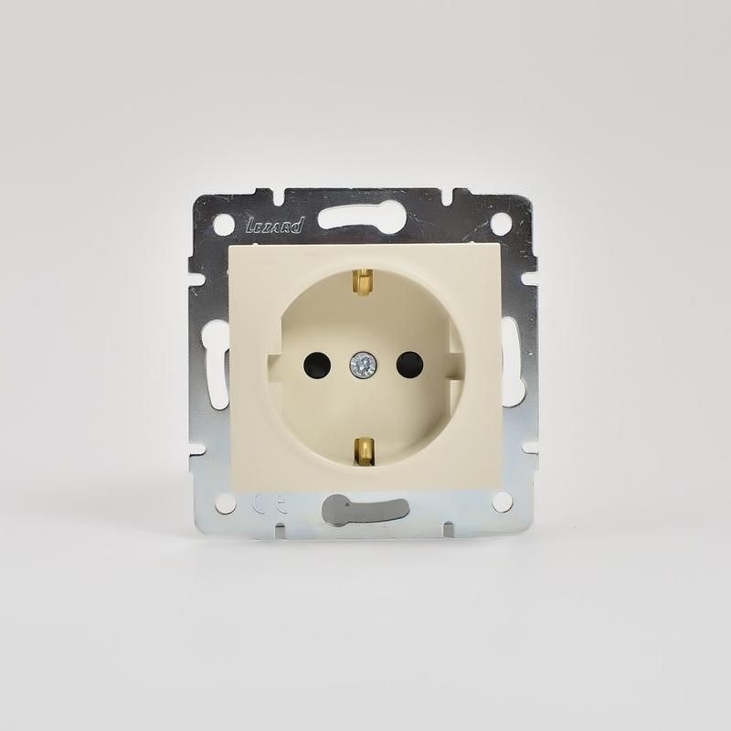 Розетка 1-м СП Karina с заземл. защ. шторки термопласт механизм крем. LEZARD 707-0388-124B