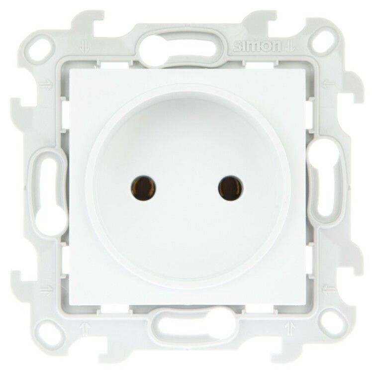 Розетка 2-х контактная без защитных шторок, белый от Simon (артикул 2450442-030) - это простая и надёжная розетка для скрытой установки в бытовых сетях с напряжением 220 В. Подходит для подключения устройств с двухпроводной проводкой, где не требуется заземление.