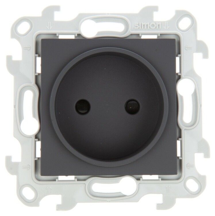 Розетка 2-полюсная с защитными шторками Simon 2450441-038 предназначена для безопасного подключения однополюсных бытовых устройств в помещениях с внутренней проводкой. Механизм с матовым графитовым покрытием сочетает надежность и минимализм дизайна.