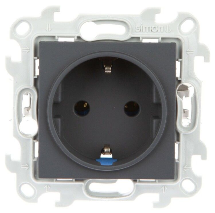 Розетка штепсельная 2К+3 16А IP20 Push&Go без защитных шторок, цвет графит от бренда Simon (арт. 2420434-038) предназначена для надёжного подключения бытовых приборов с заземлением в скрытой проводке. Конструкция с технологией Push&Go ускоряет монтаж, а матовый графитовый корпус гармонично впишется в современные интерьеры.
