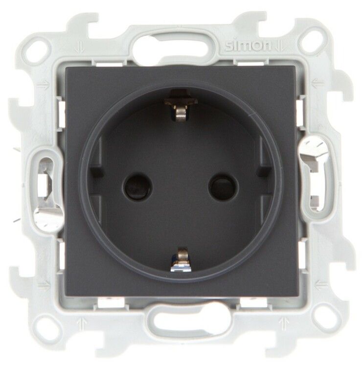 Розетка 1-м СП Simon 24 16А IP20 2P+E Push&Go защ. шторки механизм графит 2420432-038