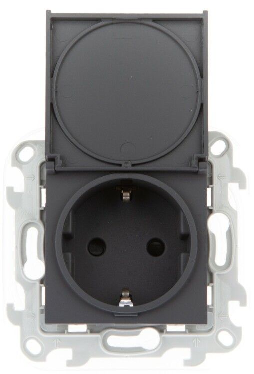 Розетка Schuko IP44 2P+E, 16А, механизм графит предназначена для подключения бытовых и профессиональных устройств мощностью до 3,5 кВт. Подходит для установки в жилых домах, офисах, гаражах, на верандах, в подъездах и других местах, где возможны брызги воды или запыление. Благодаря защищённому механизму и наличию заземления, она безопасна для использования с техникой, требующей защитного провода - например, стиральными машинами, холодильниками, электроинструментами.
