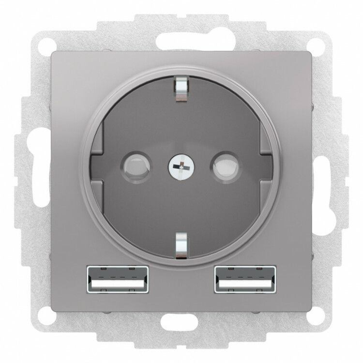 Розетка силовая Systeme Electric серии AtlasDesign с артикулом atn000330 - это комбинированное устройство для подключения бытовой техники и одновременной зарядки гаджетов через два порта USB. Механизм с накладкой рассчитан на скрытую установку, выполнен в матовом исполнении цвета алюминий и оснащён заземлением и защитными шторками.