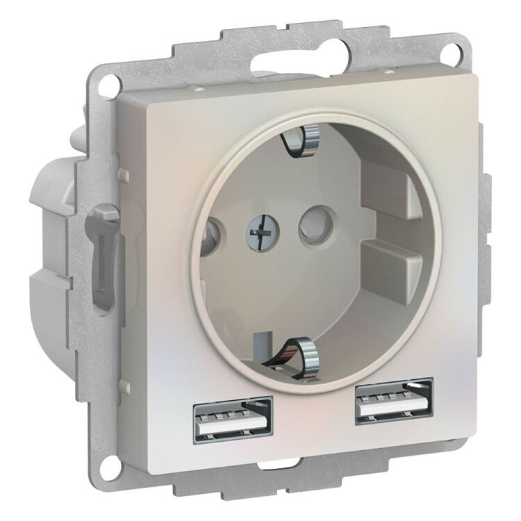 Розетка 1-м СП AtlasDesign 16А IP20 с 2-мя заряд. устройствами USB тип A+A 5В/2.4А 2х5В/1.2А механизм жемчуж. SE ATN000430 APC