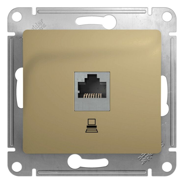 Розетка компьютерная RJ45 категория 5E механизм титан SE от Systeme Electric - это внутренняя сетевая розетка с разъёмом RJ45 категории 5E, предназначена для надёжного подключения оборудования к локальной сети через скрытую проводку. Артикул gsl000481k соответствует серии Glossa и подходит для установки в офисах, серверных и жилых помещениях.