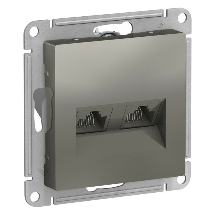 Розетка компьютерная двойная RJ45+RJ45, категория 5E, механизм, цвет сталь, SE от Systeme Electric (артикул atn000985) - это внутренняя розетка с двумя портами Ethernet для надёжного подключения сетевых устройств в офисах, серверных и производственных помещениях.