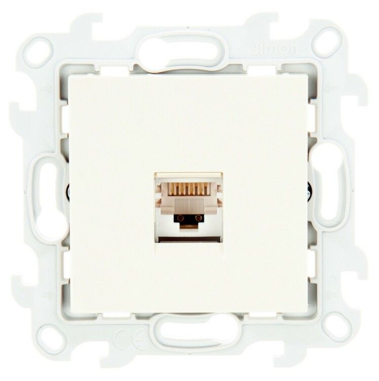 Розетка компьютерная RJ45 кат. 5E UTP, слоновая кость, механизм (артикул 2410598-031, бренд Simon) - это информационная розетка для подключения сетевых устройств через кабель Ethernet. Подходит для установки в скрытые коробки, обеспечивает надёжное соединение в офисах, домашних рабочих зонах и на производстве.