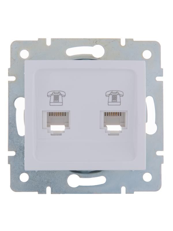 Розетка телефонная двойная RJ11 механизм белый используется для подключения аналоговых телефонов, факсов, модемов и других устройств, работающих по стандарту RJ11. Применяется в офисах, жилых домах, на предприятиях, где требуется организовать точечную коммуникационную сеть. Подходит для внутренней установки в помещениях с нормальной влажностью и температурным режимом.