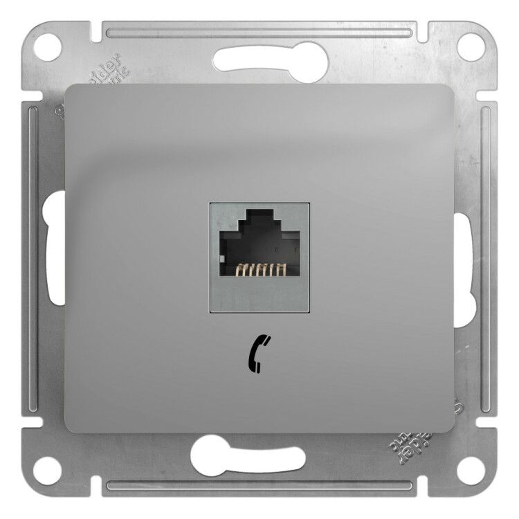 Розетка телефонная RJ11, механизм алюминий, серия SE - это скрытый монтажный механизм с разъёмом RJ11 для подключения телефонов, модемов и факсов в офисных и жилых помещениях. Произведён компанией Systeme Electric (бренд SE) в рамках серии GLOSSA, артикул gsl000381t.