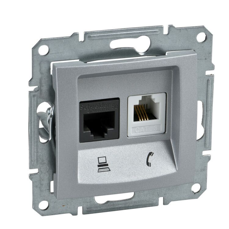 Механизм розетки комп. + телеф. 1-м СП Sedna RJ11 RJ45 алюм. SchE SDN5100160 APC