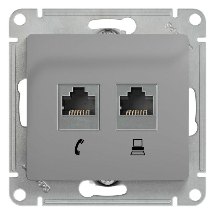 Механизм розетки комп. + телеф. 2-м СП Glossa RJ11 RJ45 CAT.5E алюм. SchE GSL000385 APC