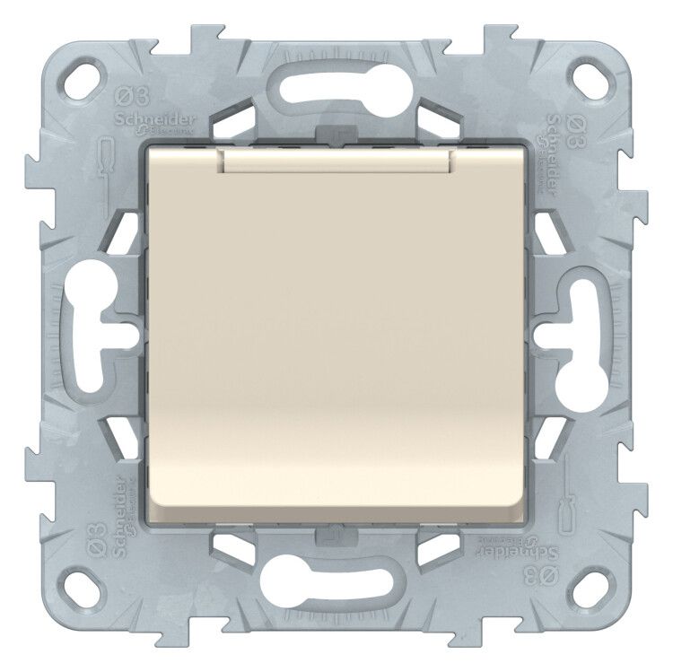 Механизм розетки UNICA NEW с защ. крышкой шторки заземл. 16А 250В IP40 беж. SchE NU503744TA APC