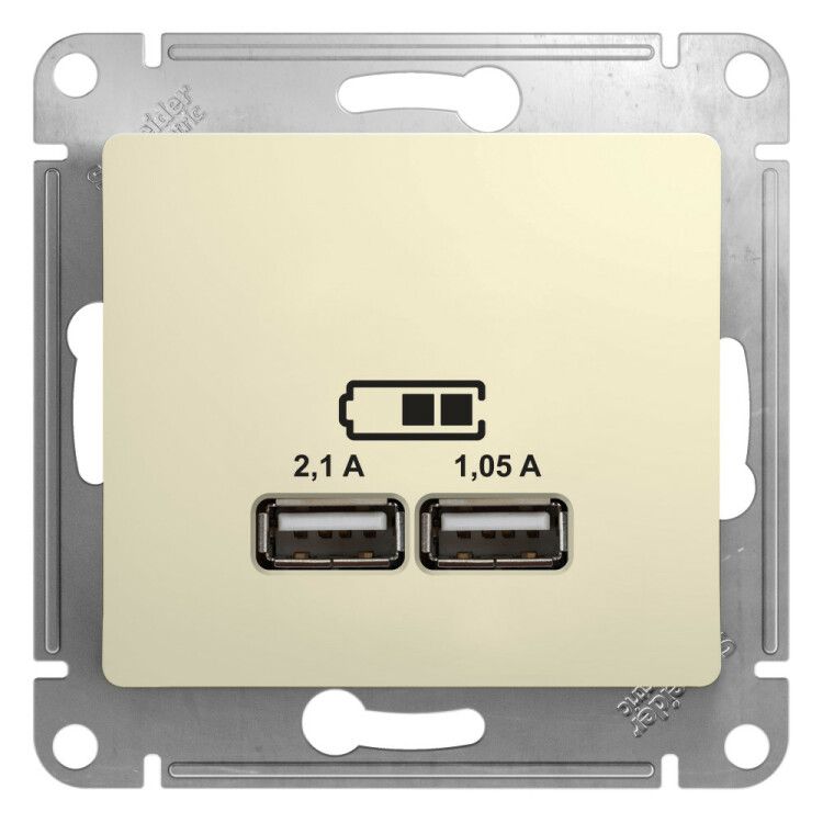 Розетка USB 2-м СП Glossa тип A+A 5В/2.1А 2х5В/1.05А механизм беж. SE GSL000233 APC