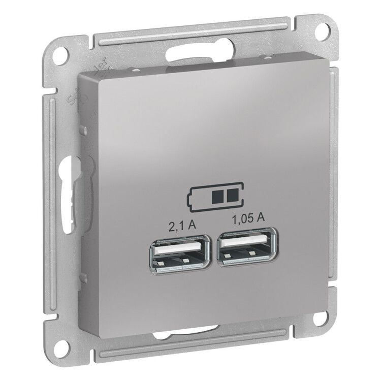 Розетка ATLASDESIGN USB 5В 1 порт x 2,1 А 2 порта х 1,05 А,механизм алюминий - ATN000333 APC