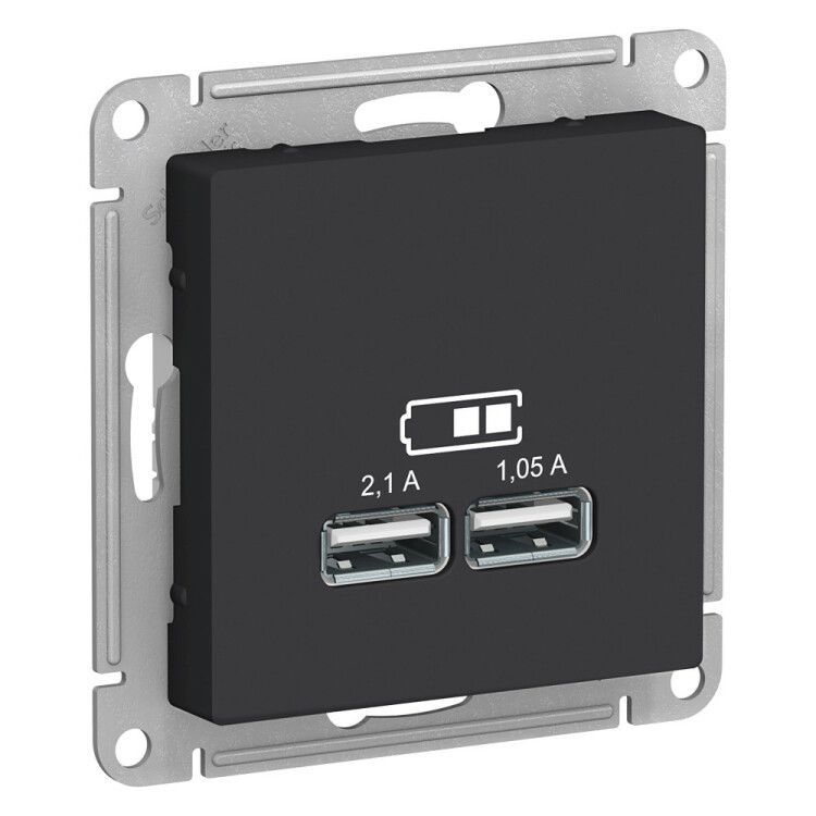 Розетка ATLASDESIGN USB 5В 1 порт x 2,1 А 2 порта х 1,05 механизм карбон - ATN001033 APC