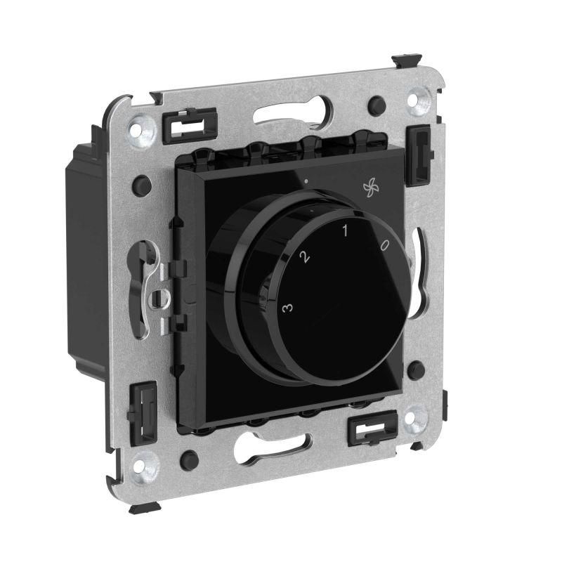 Механизм управления вентиляторами в стену, Черный квадрат DKC используется для переключения между тремя уровнями мощности вентиляторов: выключение, низкая, средняя и высокая скорость. Устройство устанавливается вместо обычной клавишной кнопки в стандартную подрозеточную коробку. Подходит для управления вентиляторами в ванных комнатах, кухнях, санузлах, промышленных помещениях и на производственных участках с требовательными требованиями к воздухообмену.