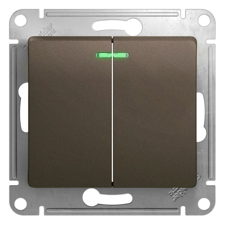 Выключатель 2-кл. СП Glossa 10А IP20 (сх. 5а) 10AX с подсветкой механизм шоколад. SE GSL000853 APC