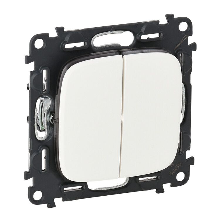 Выключатель двухклавишный 10А 250В с лицевой панелью безвинтовые зажимы белый от Legrand - надёжный механизм для скрытой установки в жилых и офисных помещениях. Артикул 752705 входит в серию Valena ALLURE и сочетает простую эксплуатацию, безопасную сборку и эстетичный внешний вид.