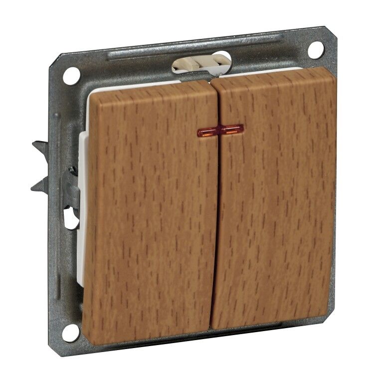 - Двухклавишный дизайн позволяет управлять двумя источниками света с одной точки, что делает его очень удобным в использовании.