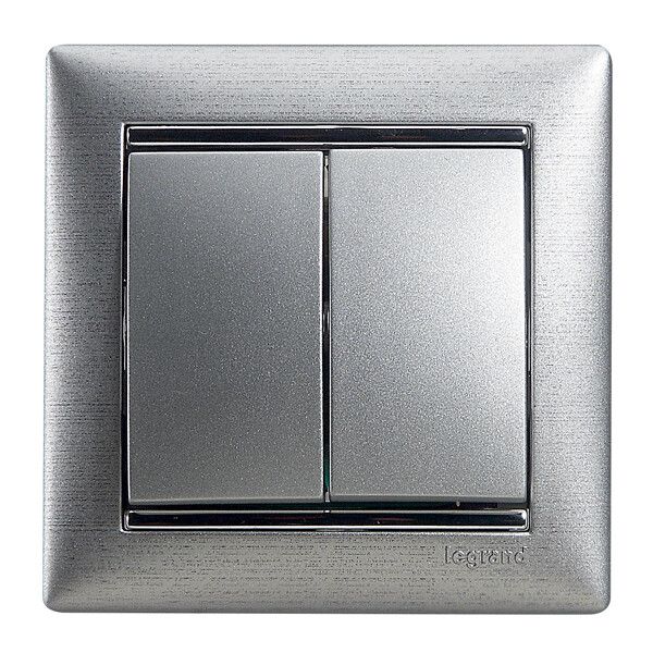 Выключатель 2-клавишный схема 5 10А безвинтовое крепление алюминий VALENA - 770105 Legrand