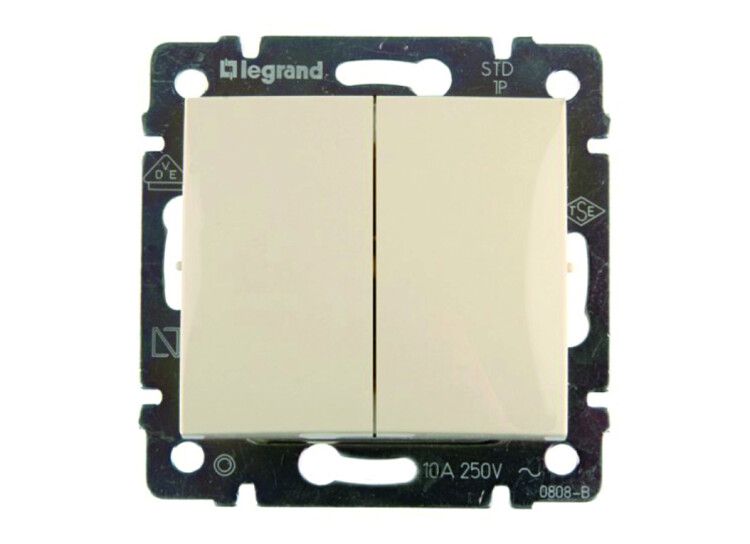 Выключатель 2-клавишный схема 5 10А безвинтовое крепление слоновая кость VALENA - 774305 Legrand