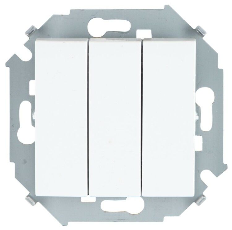 Выключатель 3-клавишный Simon 1591391-030 - устройство для управления тремя группами освещения или нагрузок в помещениях с скрытой проводкой. Простой, надежный и соответствует требованиям для эксплуатации в условиях умеренного климата.