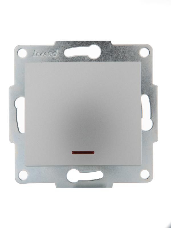 Выключатель Lezard 707-4388-111 - одноклавишный выключатель с подсветкой, рассчитанный на работу в бытовых и офисных сетях до 10 А. Механизм с матовым серебристым покрытием из серии KARINA подойдёт для скрытой установки в стену, обеспечивает удобную индикацию состояния в темноте и совместим с рамками серии KARINA.