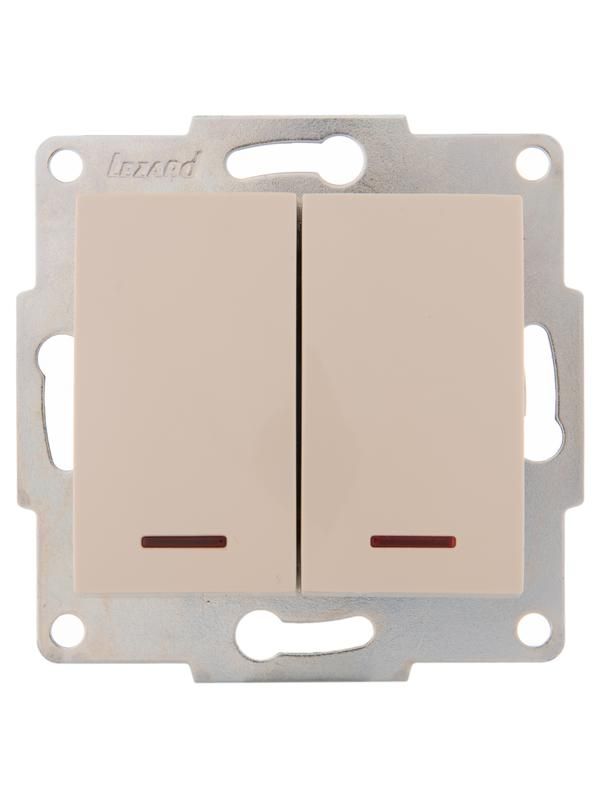 Выключатель 2-клавишный 1-пост с подсветкой кремовый механизм Lezard артикул 707-0388-112 предназначен для коммутации освещения в двух зонах с индикацией положения клавиш - удобен для спальни, коридора или детской комнаты. Механизм совместим с рамками серии KARINA, которые выбираются отдельно.
