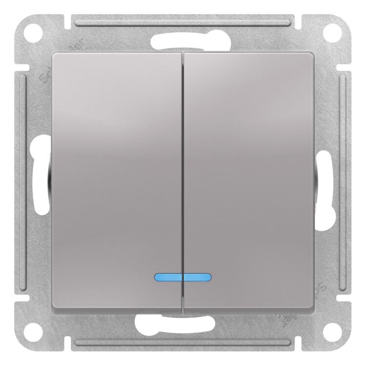Выключатель двухклавишный ATLASDESIGN с подсветкой схема 5а 10АХ механизм алюминий - ATN000353 APC